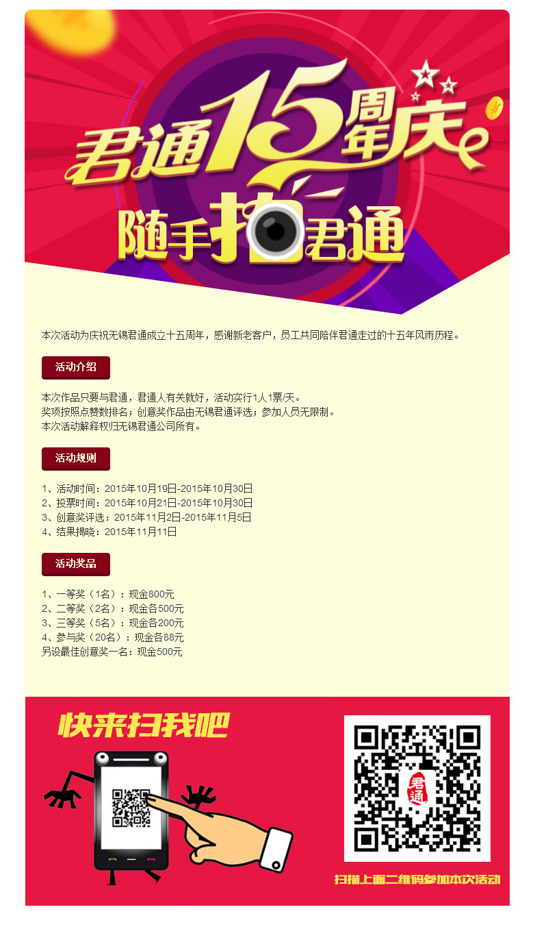 君通15周年“順手拍”勾當正式啟動啦~~快來報名到場吧~