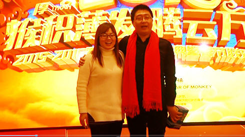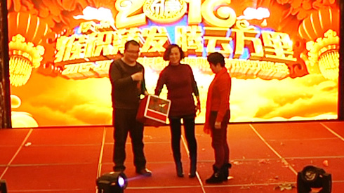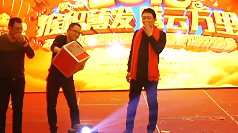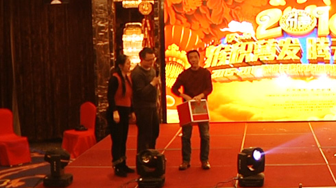 王司理夫人抽中了王司理,大獎花落自家,瞧他們樂得