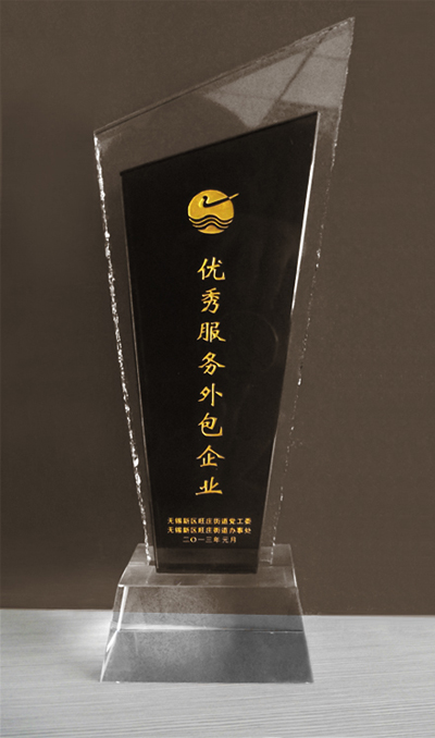 強烈熱鬧道賀我公司在旺莊街道2012年度總結懲處暨2013年任務帶動大會上榮獲“辦事外包企業”獎杯