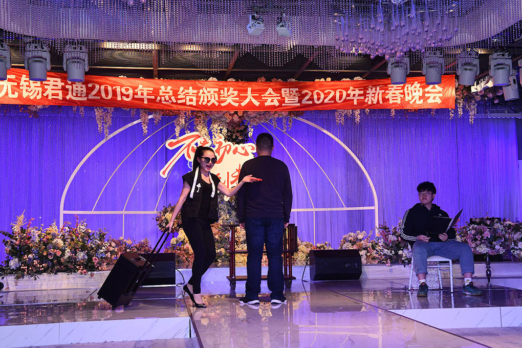 上面的節目有些與眾差別,雙鐄《拜別》 由電銷一部沈陽 田昌浩同窗帶來,他們服裝的像模像樣,一小我在前面扮演,一小我在前面措辭,前后共同,舉措搞笑,讓人不得不失笑.