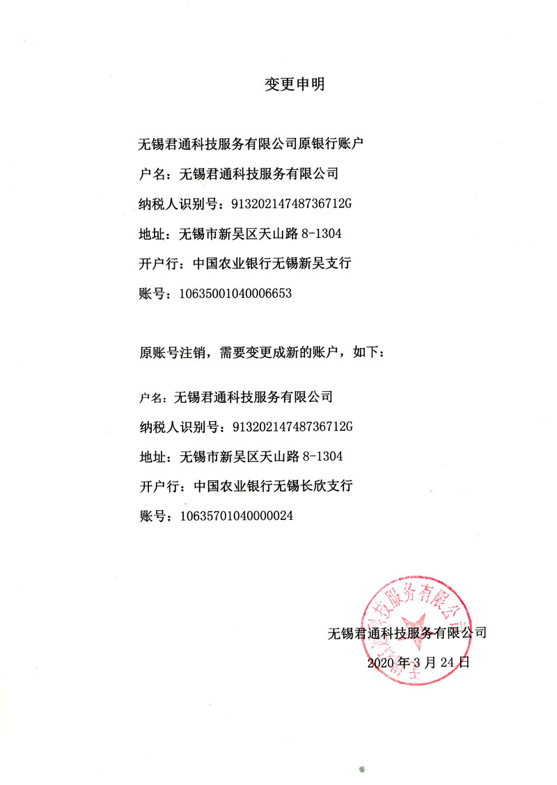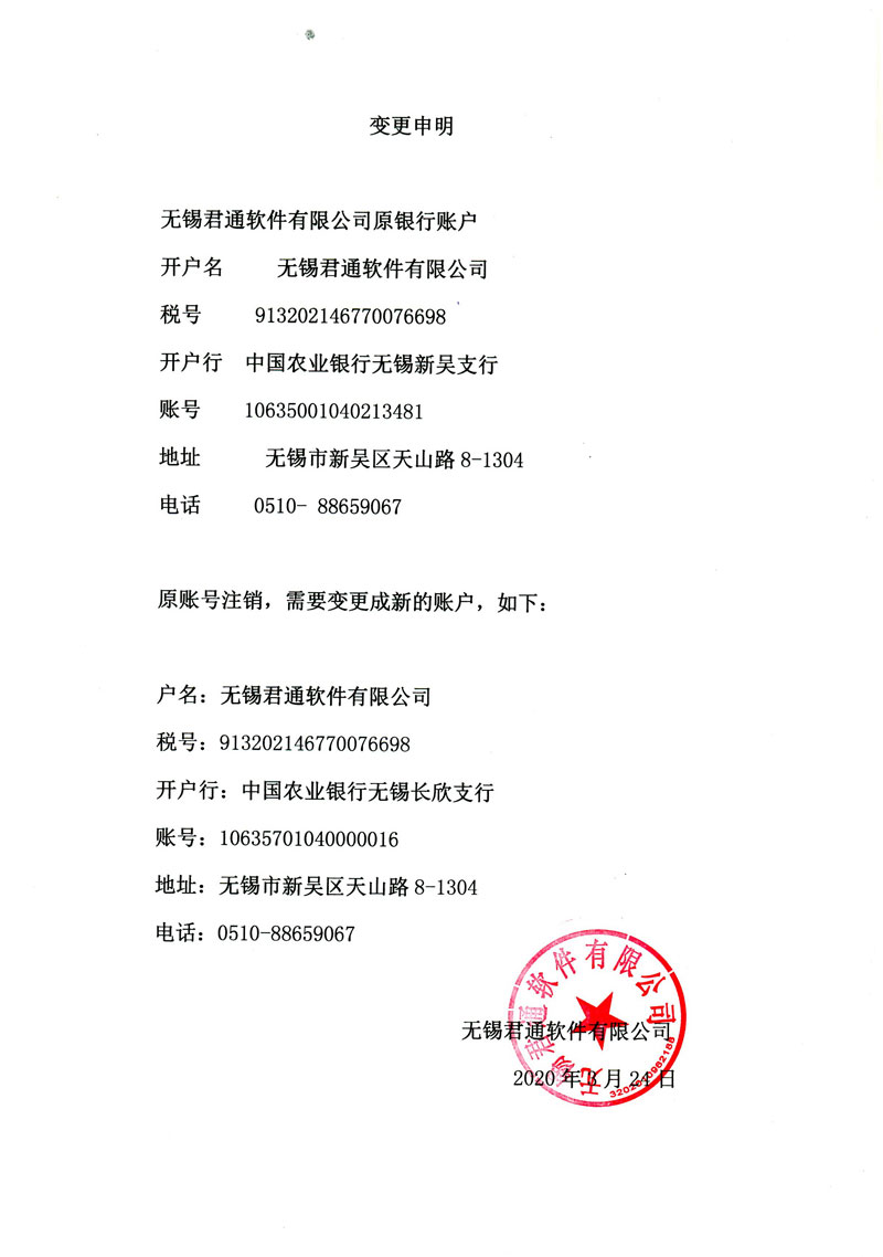 無錫君通公司賬戶變革聲名
